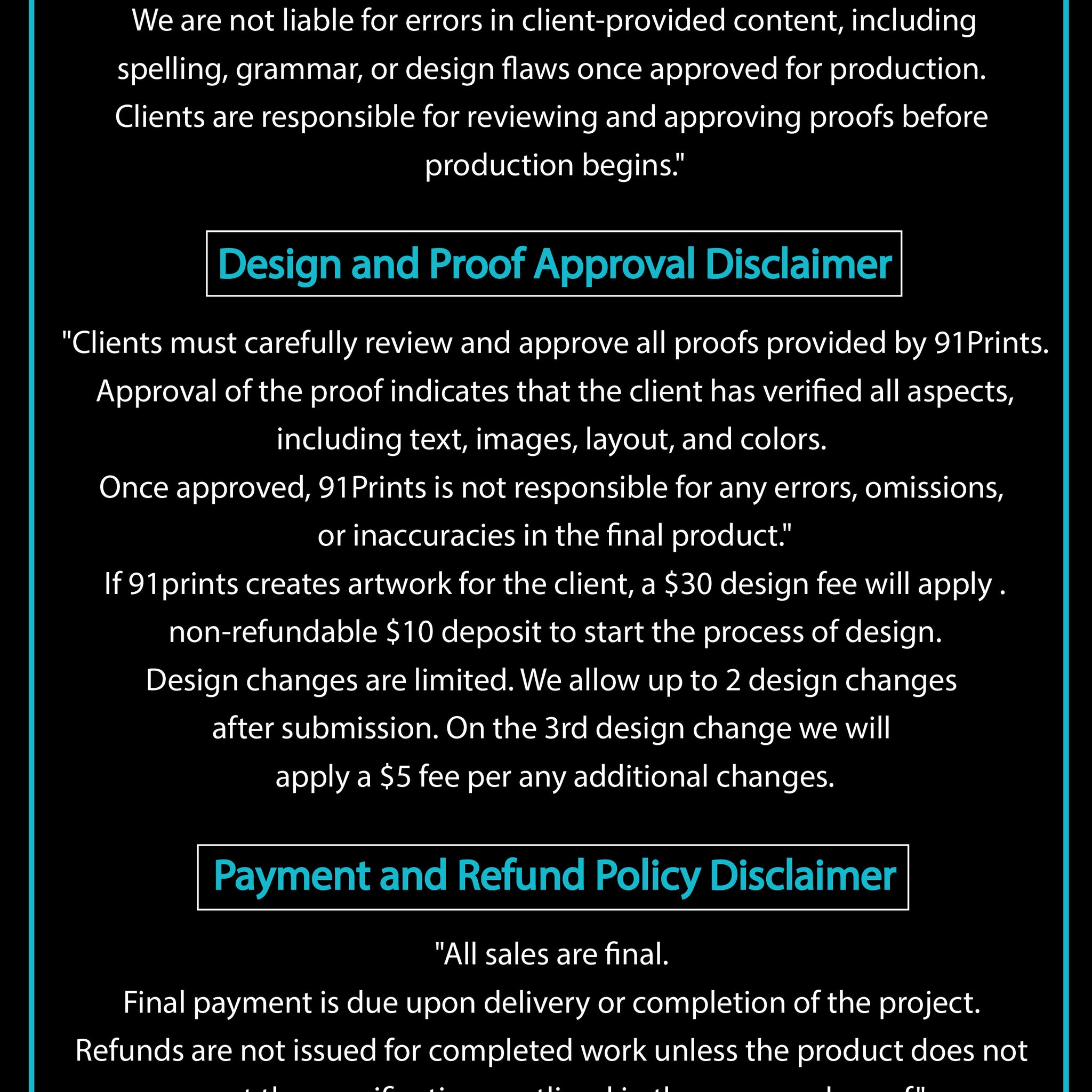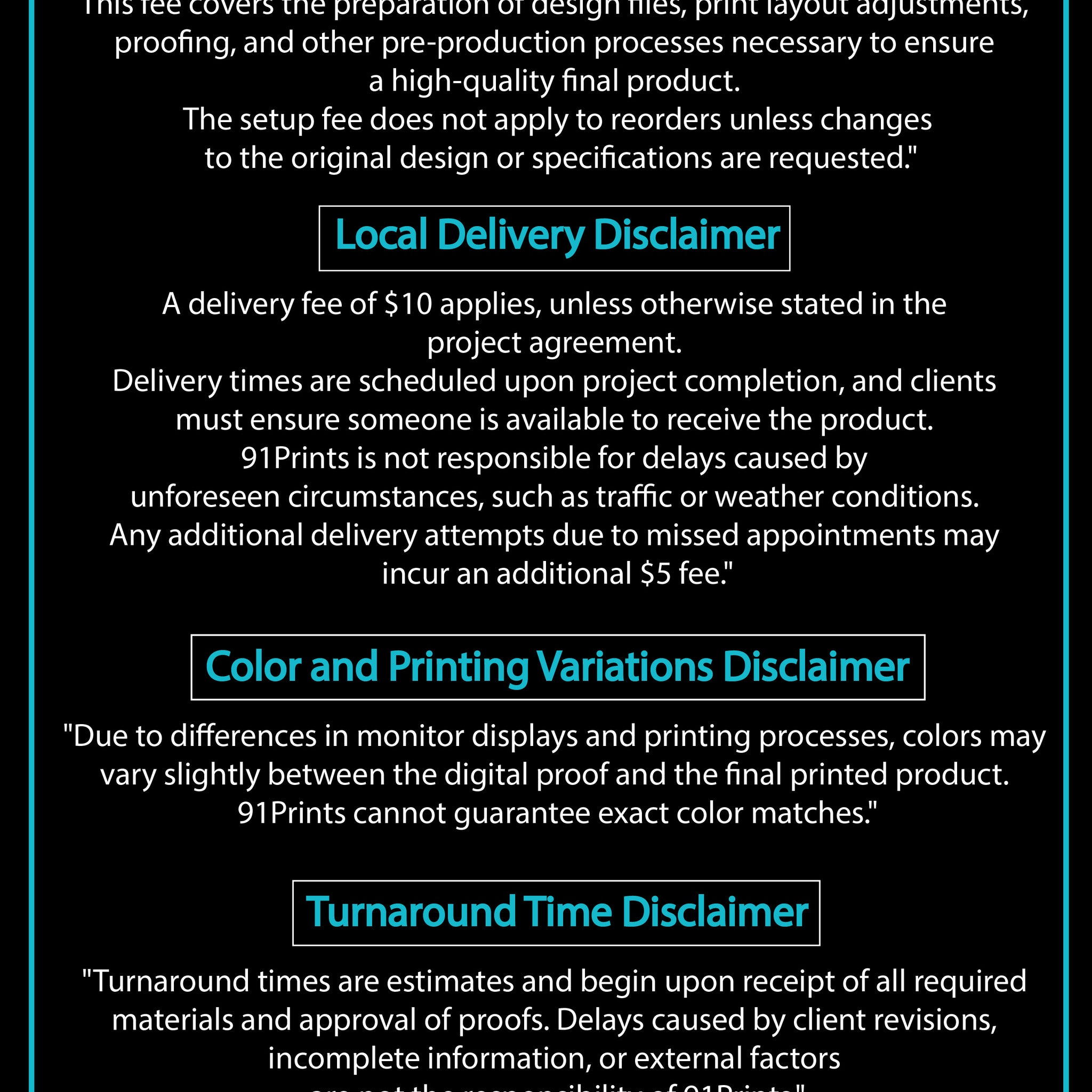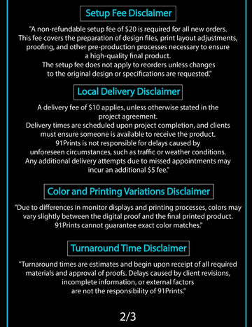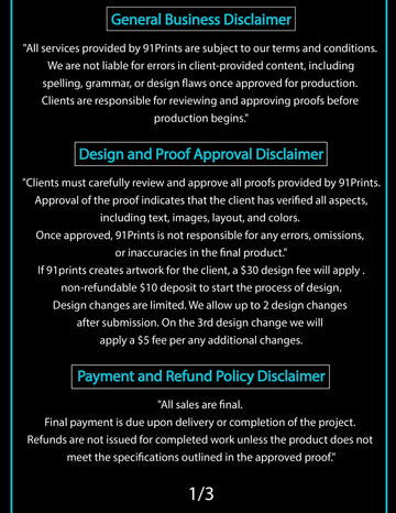 At 91 Prints, creativity meets performance. Based in South Florida, we specialize in custom apparel, signage, and promotional printing for individuals, teams, and businesses that want to stand out. Whether it’s custom sportswear, banners, storefront vinyls, or on-site heat pressing events, our goal is to bring your ideas to a reality— one design at a time.