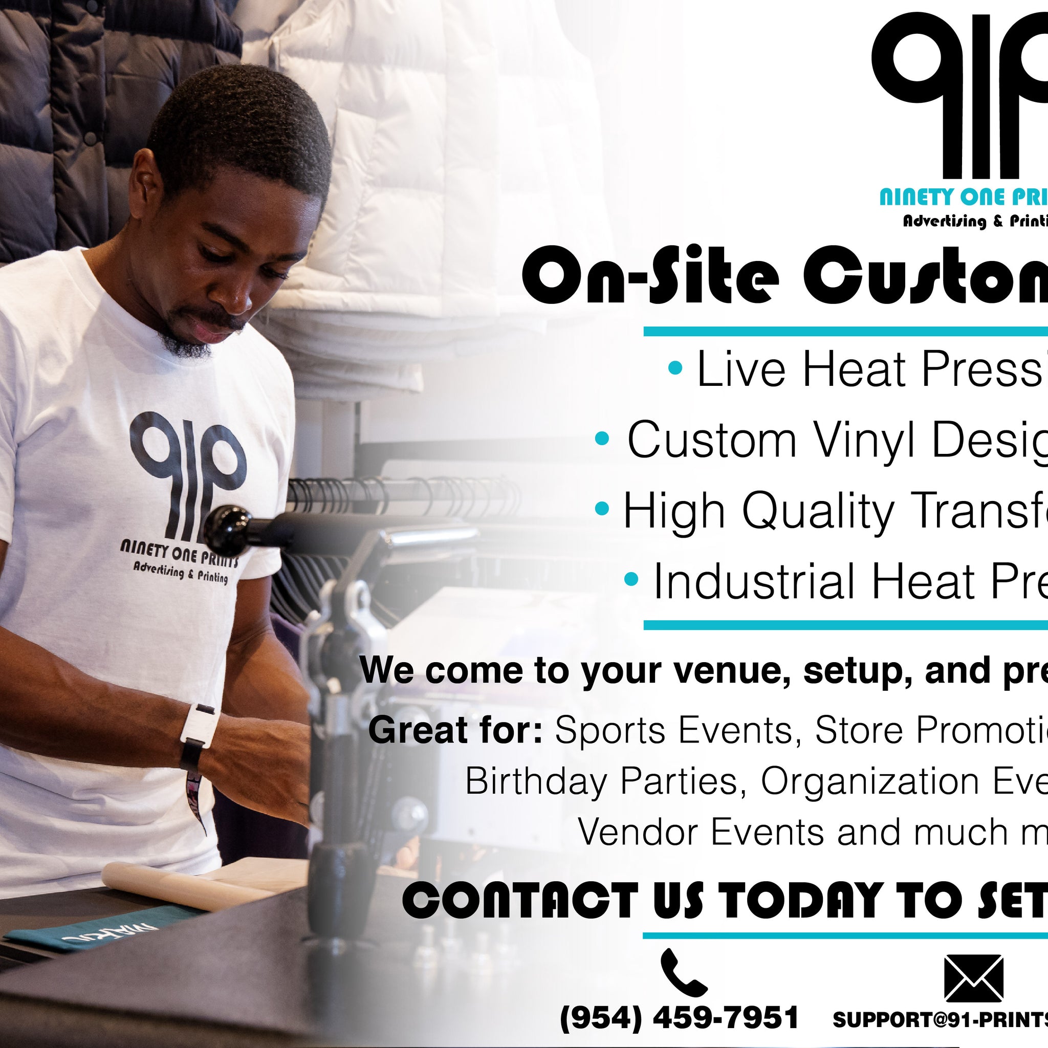 Take your event to the next level with live printing! We bring our heat press and